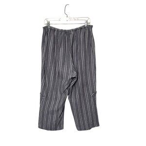 Habitat Women's 100% Linen Striped Elastic Waist Cropped Pants Gray Beige Blue M