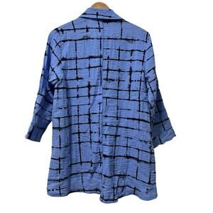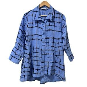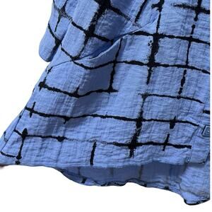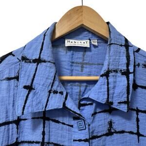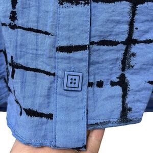 Habitat Womens Button Up Geometric Tunic Top Size S Blue Lagenlook Artsy