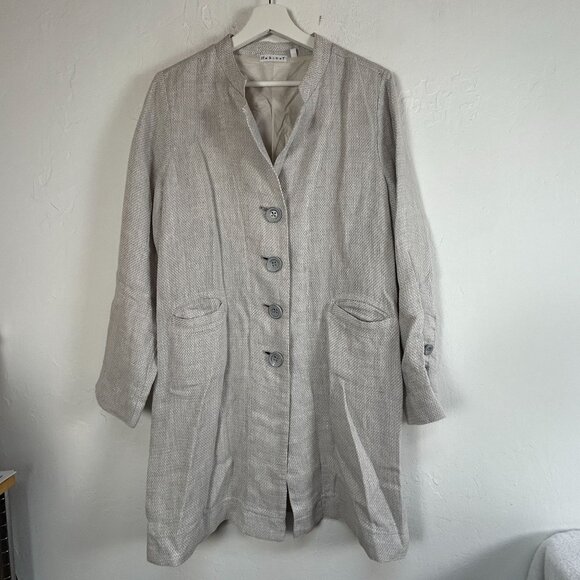 Habitat Womens Linen Button Front Tunic Jacket Medium Gray Pockets Lightweight