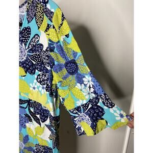 Habitat Women's Medium Floral Tunic Dress V-Neck Bright Artsy Blue Half Sleeve. Nice condition.