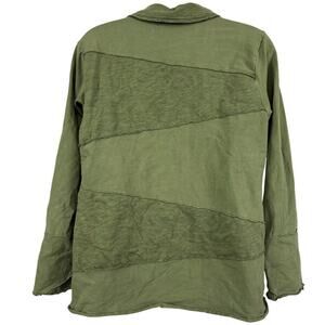 Habitat Womens Olive Green Lagenlook Stretch Cotton Knit Jacket Button Up sz S