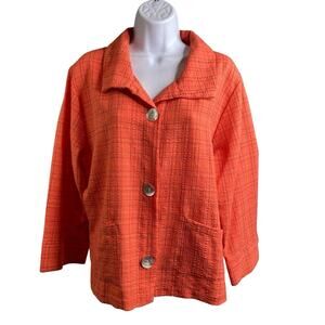 Habitat Women's Orange Textured Chore Jacket Size L Lagenlook Coastal Artsy Boho