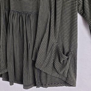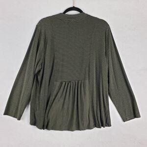Habitat Women's XL Open Front Waterfall Sweater Green Black Stripe Casual Layer