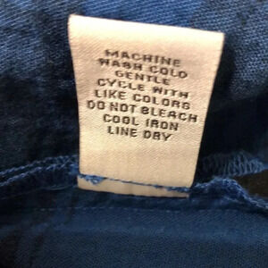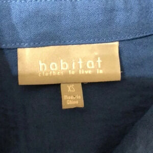 Habitat black/blue tunic style top with three large decorative buttons. Remaining buttons are hidden. Measurements are 19” from armpit to armpit and 28” in length.