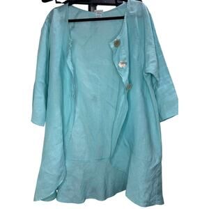 Habitat clothes to live in linen jacket cardigan topper tunic seafoam green 3 4 sleeve travel artsy lagenlook minimalist resort