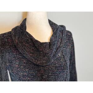 Habitat sweater black & multi color heathered cowl neck tunic button detail Sz M