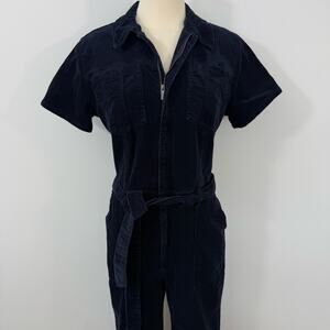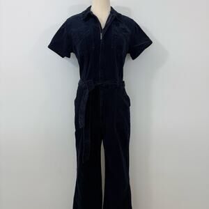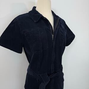 Habitual Corduroy Utility Jumpsuit Short Sleeve Flared Leg in Navy 10