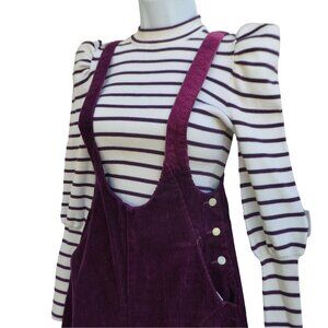 NWOT Habitual Girl Purple Corduroy Pinafore Overalls Knit Sweater Top Matching Outfit Set 2pc. Suspender Pants Front Hip Slot Pockets with Side Snap Closure. Back Patch Pockets. High Waisted. Wide Leg. Micro Ribbed Knit Striped Top Long Puff Shoulder Bishop Sleeve. Machine Wash. 100% Cotton Corduroy. Viscose Poly Blend Knit Top. Tagged Size 12.