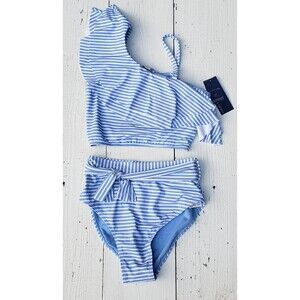 Habitual Girl's Blue Striped Ruffled Bikini 2 Pc Set Swimwear Swim Size 16