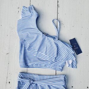 Habitual Girl's Blue Striped Ruffled Bikini 2 Pc Set Swimwear Swim Size 16 NWT