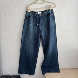 Habitual Jade Drawstring Denim Jeans Wide Leg in Tide Dark Wash