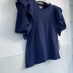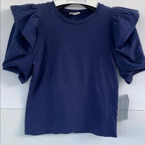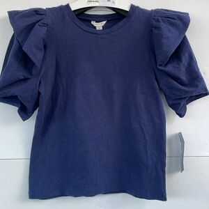 Habitual Kids Navy Blue Envelope Puff Sleeve Festive Holiday Cotton Top Size 12