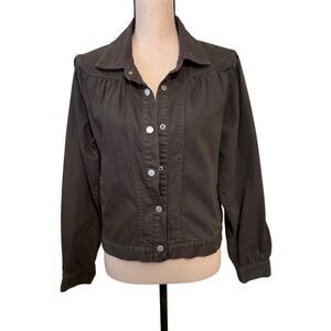 Habitual Mushroom Twill Trucker Style Full Sleeve Cropped Jacket Size M Indie