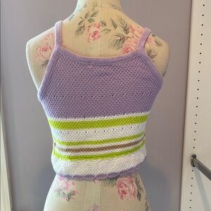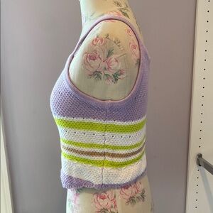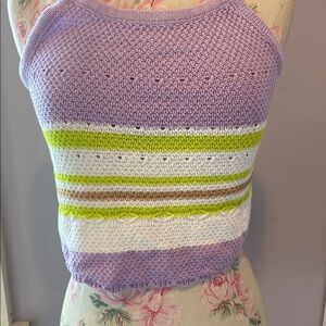 Stylish knit tank with purple and green stripes. Perfect for casual wear.