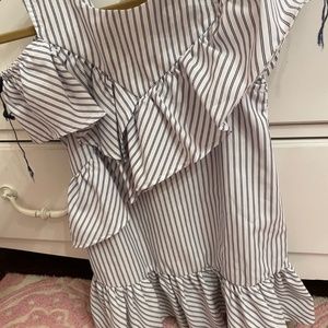 Navy and white dress. Two small marks