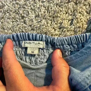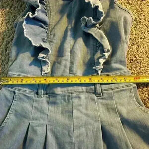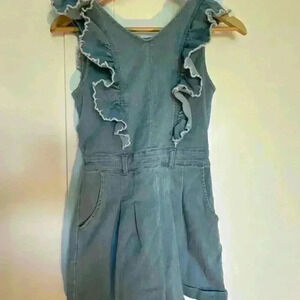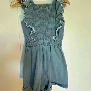 Habitual girls denim jean shorts romper size 16 pleated smocked stretchy v neck