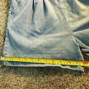 This romper is adorable! Perfect for girl-teen. The material is 57% cotton, 32% polyester, 10% rayon, 1% elastane, making it the perfect combination of soft and stretchy. She will be right on trend with ruffle detail and smocked back. This is machine washable. It is a pull on style with a slight V-neck. Large leg opening, pleated shorts, pull on style. Non-smoking home. No rips, stains or holes. Excellent like new condition.