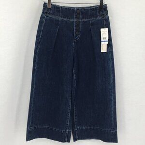 Habitual wide leg crop denim jeans shorts blue snap culottes new 25