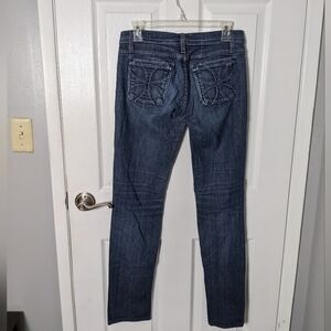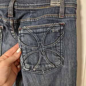 Habitual y2k Distressed Knee Dark Wash Cross Design Back Pocket Jeans Size 28
