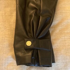 Habitual Kids NWOT black faux leather parachute pants with smocked elastic waistband, 2 cargo pockets with gold buttons, strap with gold button at the ankle.