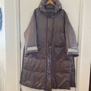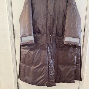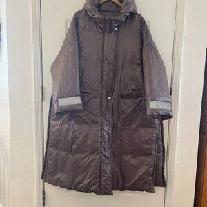 Hache Gray Over-Sized Side Slits Puffer Hooded Jacket Sz 44 Lr