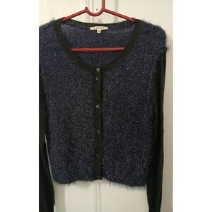 Hache womens medium blue gray glam cardigan Italy sweater polyamide color block