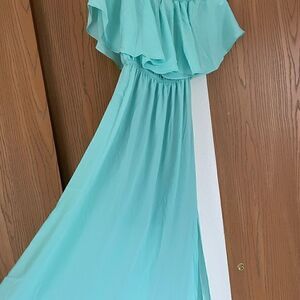 The Hacienda Maxi's versatile ruffle top has an elastic neckline to wear off the shoulder, strapless, and one shoulder. Cinches at the waist with elastic to flatter no matter which shoulder her ruffle sits on.