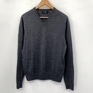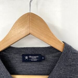 Hackett London M Merino Wool Dark Gray Elbow Patch Sweater