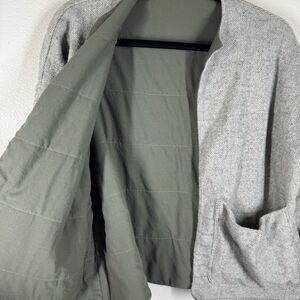 Hackwith Design House HDH Open Front Wool Blend Rainey Jacket Pockets Reversible, Greenish Gray Color, Sustainable, In Excellent Preowned Condition. Women’s Size M/L