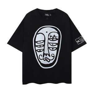 Haculla Abstract Face Pattern Black Short Sleeve