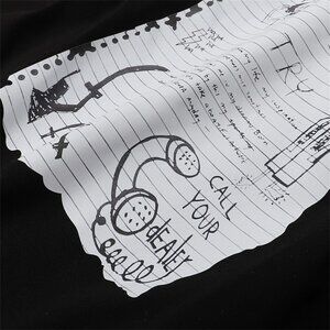 Sticky drawings, the words "TRY" and "CALL YOUR DEAD"