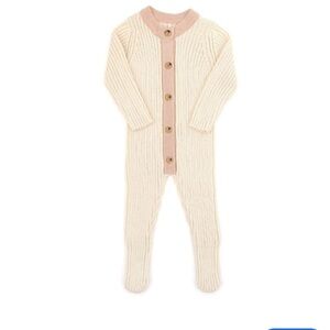 KNITTED FOOTIE NATURAL & SHELL PINK cotton