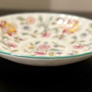 Haddon Hall B1451 Green Trim by Minton - Demitasse Saucers and a Flat Cup - Haddon Hall Floral Chintz by Minton - Made in England. Vintage from before 2000