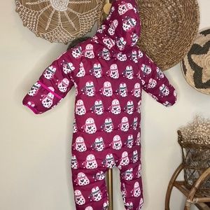 Hadley Baby Girl Puffer Snowsuit Size 18-24 Pink Owls
