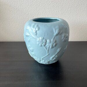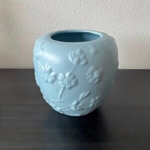 Haeger Matte Blue Floral Vase // Embossed Dogwood Branches // 6.75" Tall Vintage