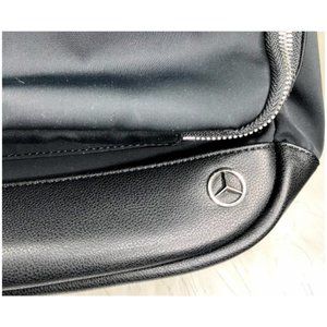 Quality Haerfest for MERCEDES BENZ laptop backpack.Never used. Excellent pre owned condition. Black Nylon. Leather Bottom, Straps. Padded. Silver Colored hardware. Double zippered. Approx. meas.19.5" x 5.25" x12.5". Roomy & Durable Backpack. Large outer double zip pocket with multiple elastic sections for securing essentials. Access hole for electronic cords. Silver mercedes logo & 'haerfest" stamped both outside and inside.Perfect for the office and back, morning gym session & night out.