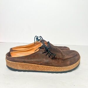 Haflinger Brown Leather Side Stitch Clogs Mules Size 37 6 Women’s