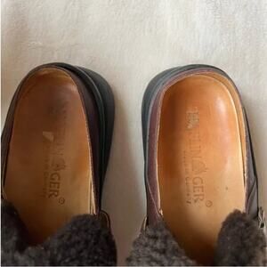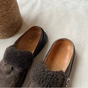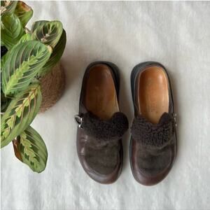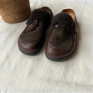 Haflinger Brown Leather Slide-On Faux Fur Trim Loafers