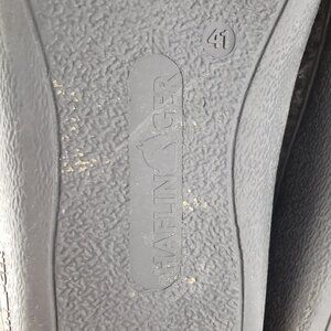 Haflinger Wool Felt Clog Slippers in Gray. Soft boiled wool uppers with supportive insoles and sturdy rubber outsoles for indoor or outdoor wear. Easy slip-on comfort design. Warm, breathable, and durable construction. Haflinger size 41 corresponding to a US womens 10 and mens 8.