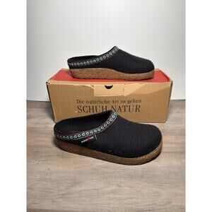 Haflinger GZ 15 Women's Black Wool- Brown Sole Clogs Size 37 US 6- NIB