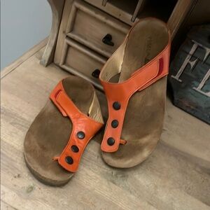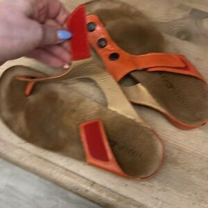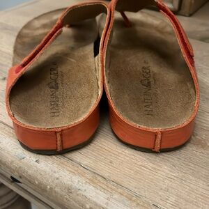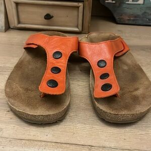 Haflinger Leather Sandals Orange Suede Footbed Button Embellishments Size 41/10