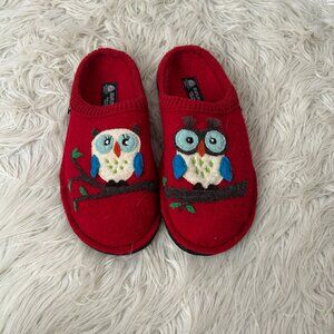 Haflinger Owl Felted Wool Slippers Red 42 11