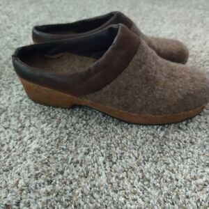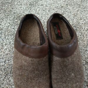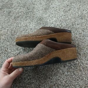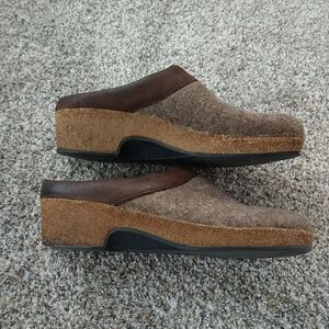 Haflinger Womens 41 Slip On Mule Clogs Wool Wedge Brown Tan see pics for condition