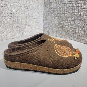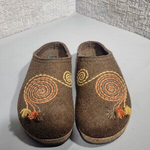 Haflinger Women’s Size 6 Brown Wool Embroidered Slip On Clog Shoes