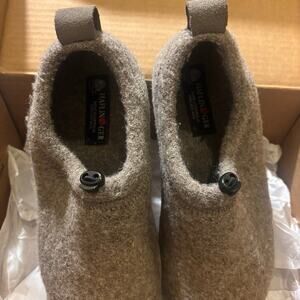 The Haflinger Guido features a 100% boiled wool upper and a practical toggle closure for adjustability.