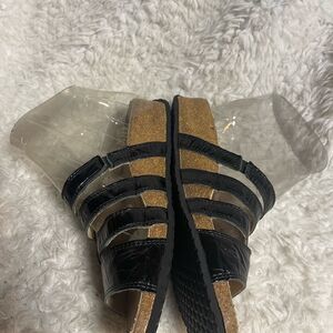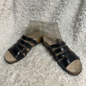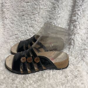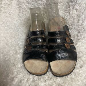 Haflinger Leather black Slide sandals brown buttons accent Size 10 . Pre owned in good used condition