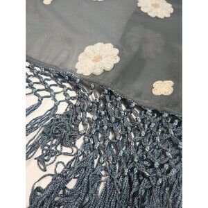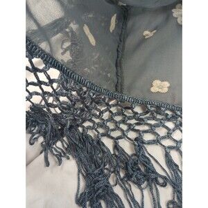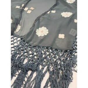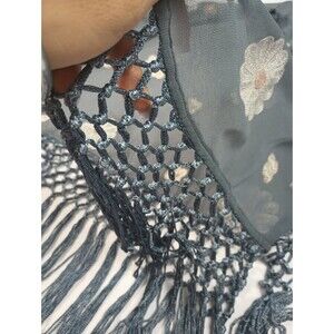 Hagel Sz L Gray Chiffon Open Front Cover Up Top Floral Kimono Tasseled