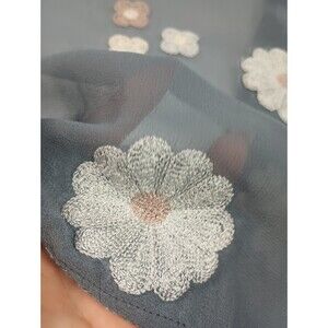 Introducing a beautiful Hagel gray chiffon cover-up top with a lovely floral pattern, perfect for any occasion. This blouse features short sleeves, an open front design, and tasseled accents. It comes in size L and has a regular fit for comfortable wear.