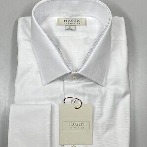 Hagen Men’s Dobby French Cuff Dress Shirt – White – Size 18 36/37