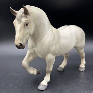 This ceramic horse figurine showcases detailed craftsmanship and elegant design, embodying the strength and grace of the Percheron breed. A timeless collectible.